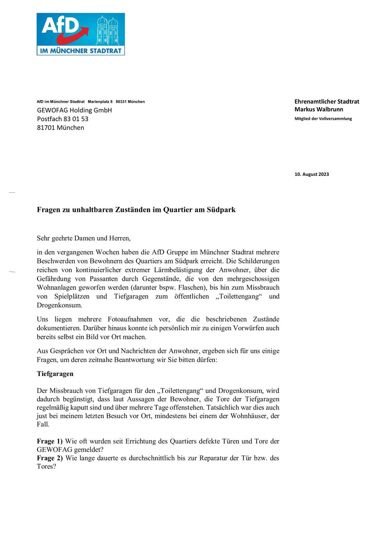 Die Wahl von drei AfD-Politikern in den Münchner Stadtrat, am 15. März 2020, war deshalb ein konsequenter und für München überfälliger Schritt.Wir wollen diese Chance nutzen, um wieder vernunftorientierte, bürgerlich-wertkonservative Politik in das Münchner Stadtparlament zu tragen. Gerade München darf nicht einer politischen Konkurrenz überlassen werden, die aus der beschaulichen Großstadt immer mehr eine linksgrüne Ökotopia-Traumwelt machen will.